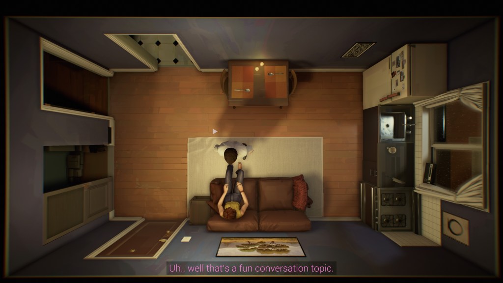 Twelve minutes is a story-driven adventure game, set in a charming little two room apartment. The story tells about a husband, who gets stuck in a twelve minute time loop. A murderer is coming their way and he has to stop it happening all over again. The story was good with twist and turns I didn’t saw coming.