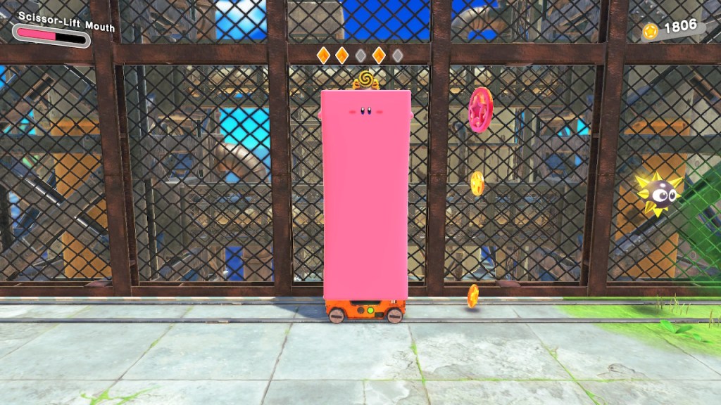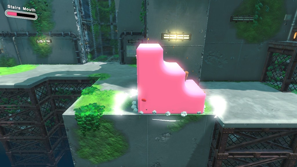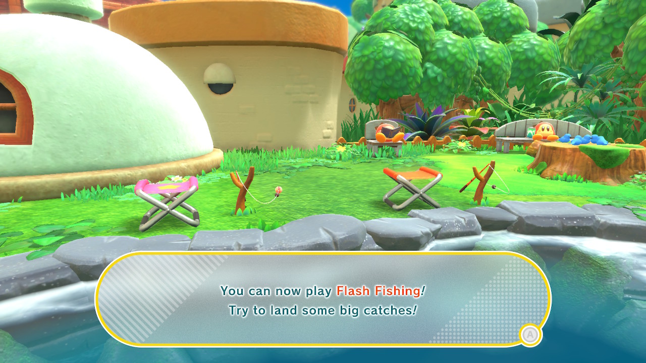 Kirby and the Forgotten Land has a hub, called The Waddle Dee Town, area that can be grown and changed by the amount of Waddle Dees player collects. Throughout the gameplay I could open a fishing area, Kirby’s own home and shops where I could by items that I can use in the levels. Kirby could hold on to one item at once. I used the extra health, which came useful in the more demanding boss battles.