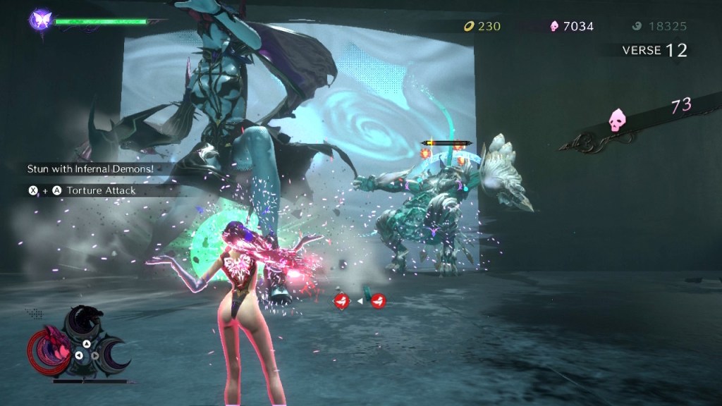 What comes to the gameplay and battle, the game is little bit different. In the past two other Bayonetta games, you can summon Demons to help you in the battle, but in Bayonetta 3, player can now fully control them. The battle system is otherwise pretty much the same than before. You can fight using Bayonetta and her over-the-top fighting system or you can summon Demons. The only thing is that Bayonetta has to dance to keep the summoning up, if she got hit, the summoning stops. There’s also a magic meter that runs out eventually and it need to be charged to summon again.