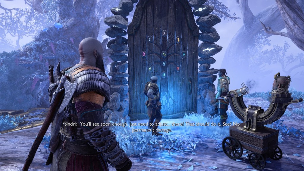 What was different to the previous game was that God Of War: Ragnarök didn’t have a hub area. It had a resting place but not a one huge place where I could travel to other realms like in the previous game had. The travelling happened with the warp door which now needed a special kind of seed to open a way to travel to another realm.