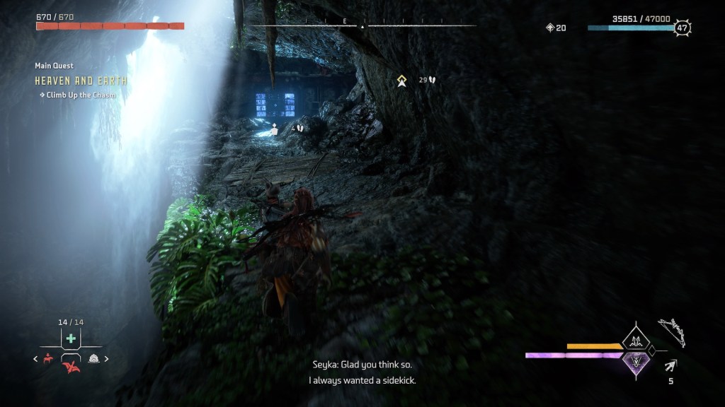 Pelin pelattavuus ei käytännössä saanut mitään uutta, lukuun ottamatta uusia aseita, joita en edes käyttänyt. Kun pelasin Zero Dawnia ja Forbidden Westiä, pysyn yleensä vain muutamassa tärkeimmässä aseessa. Minusta on vain hankalaa yrittää käyttää monia erilaisia aseita taistelussa, kun ne ovat yleensä erittäin nopeatempoisia ja tuskin ehdit reagoida mihinkään. Jotkut kokeneemmat pelaajat pitävät näistä ylimääräisistä aseista ja vaikeimmissa vaikeusasteissa vain jousiaseen käyttäminen ei auta lainkaan.