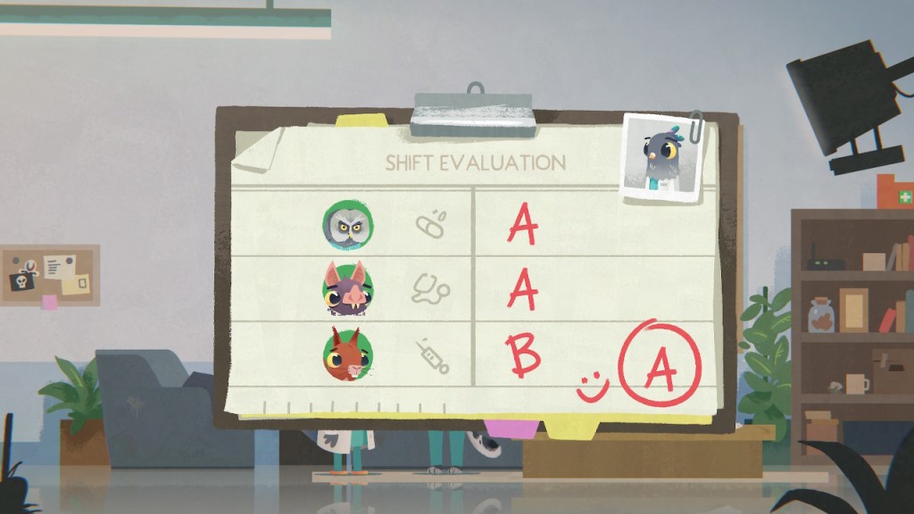 The gameplay in Fall of Porcupine was rather simple, but it had its challenges at times. The gameplay was centered in walking around the town, talking people and, of course, working in the hospital. In the hospital, Finley work as an internist, so I had to take care of my patiences and that showed as minigames. In the beginning they were rather easy to do, but they got difficult each and every shift. In the end of each shift I got a grade from my boss and first I got straight As, but then they began to drop. I liked how the minigames were designed and how new and different they felt. There was also some platforming, but it was so little that I wouldn’t call this game a platforming by any means.