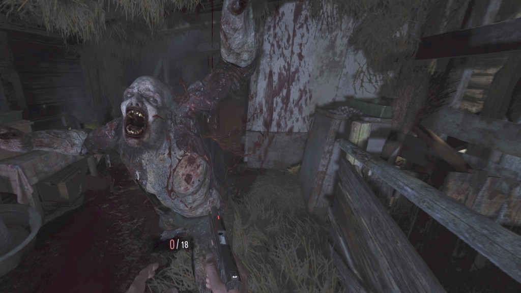 First thing the game made me to do was to go through a tutorial of the VR verison of the game. In the beginning I did find all the things very difficult. Using the guns and loading them was somewhat made realistically, where I had to physically put in the magazine and load the gun. I noticed that the systems didn’t work properly most of the time and I knew it would be a huge problem in the game. Thankfully there was simple options for the gun usage and I chose them in the settings. If you’re not a very familiar with the VR (like me) and all the fancy things it can do, I do recommend using the simpler settings. There was also settings for the VR and other options. Just like in the Resident Evil 4 VR Mode, I used to adjust where my guns and pouch were for easy access.