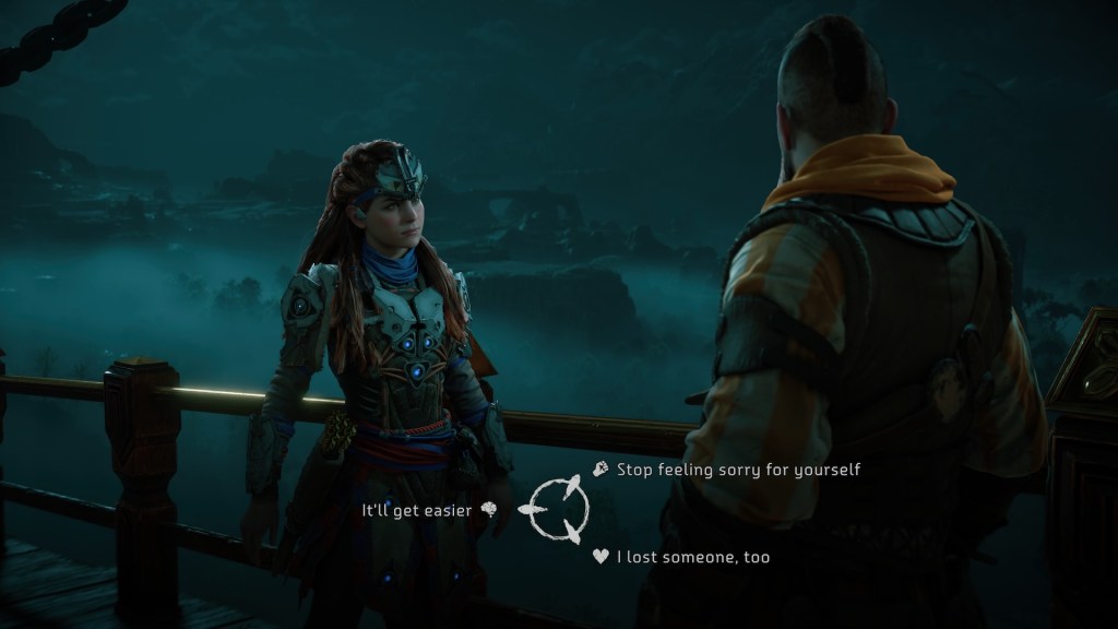 Horizon Zero Dawn Remastered is fully voice acted; all the people, even the ones you cannot interact with might talk to you. I think the voice acting was very good and especially Aloy’s actor was my favourite. The game has good music and it reminded me of movies at times. Sound effect were amazing as well. All the bizarre sounds the robots made especially when attacking made my heart pump every time I had to encounter them.
