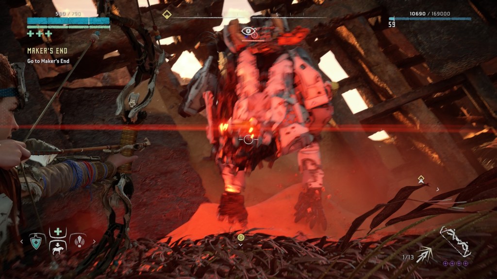 Controlling Aloy was rather easy. What helps the shooting was Aloy’s ability to “slow down time” that gives more time to aim at target. I used this every time it was possible as it has some cooldown time. Aloy can also melee fight with her spear. The game has lots of climbing but it was made easy.