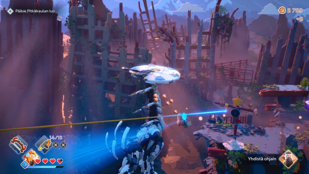 Vaikka kaikki LEGO Horizon Adventuresissa näytti kauniilta ja todenmukaiselta, se tuntui kiireiseltä silmään. Tarkoitan tällä sitä, että tuntui siltä, että ympäristöön oli tungettu liikaa asioita, eikä silmäni pystynyt keskittymään tärkeimpiin asioihin. Mutta lopulta taisin tottua siihen.