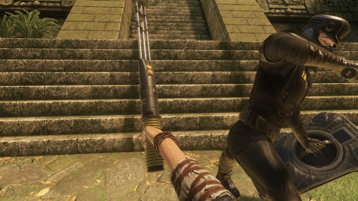 The gameplay and controls was, if I put it in short couple of words, good and bad. It was easy to control around the character, but I think the gameplay is sometimes very intricate that might frustrate players. I did enjoy the puzzles and I think that is where the game shines, but the combat was extremely bad. It was just hitting enemies with weapons that had little to no hitting power and what made all the things worse was that some enemies had armour on and hitting that didn’t do any damage. Even the enemy AI is very bad, they got stuck or just stood still doing nothing at times. It was aggravating for sure. Not to mention how the game tracks your hand movements wasn’t the best either. Climbing was OK-ish. There were some issues with that as well such as trying to swing yourself while hanging on a rope and grabbing the next object. Wanderer: The Fragments of Fate is also full of bugs and even game-breaking glitches.