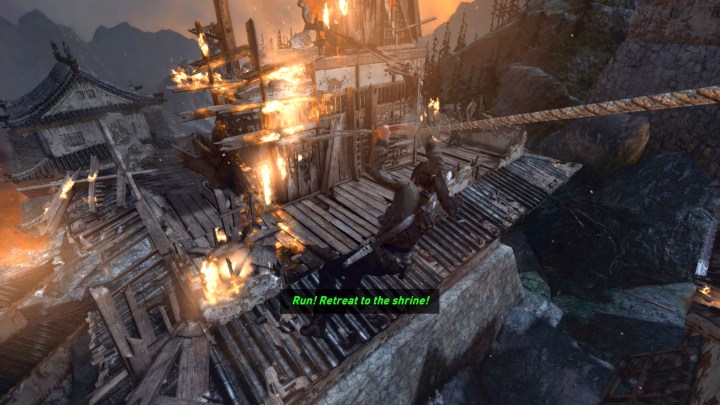 Lara has four basic weapons, which she won’t get all in the beginning. They are give to her along the way. The gameplay is fast-paced, lots of jumping and climbing, action-heavy, movie-like with explosions and dire situations.