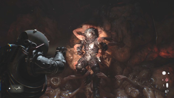 As Cronos: The New Dawn is a survival-horror genre, there are item slots and in the begin I got six of them, which means there are an item box in very Resident Evil style. I did store everything I couldn’t carry into the box. The suit, that your main charatcer is wearing, can be upgraded as can the weapons in very basic ways. I first upgraded more firepower to my handgun and more item slots. There are some little environmental puzzles in the game, that I found to be very easy to solve. Cronos: The New Dawn has boss battles and a few of them took me a couple tries to beat, but I think they were well-designed and not “shoot as much as you can” type of bosses. They had some tricks to be beaten. Lastly, about the gameplay, I wanna say that there is no map! Yes, only a waypoint, but no maps of any kind which I found to be annoying in couple of areas. The game doesn’t need maps as it is rather straightforward, but there are a few larger areas that might feel little bit confusing without map.